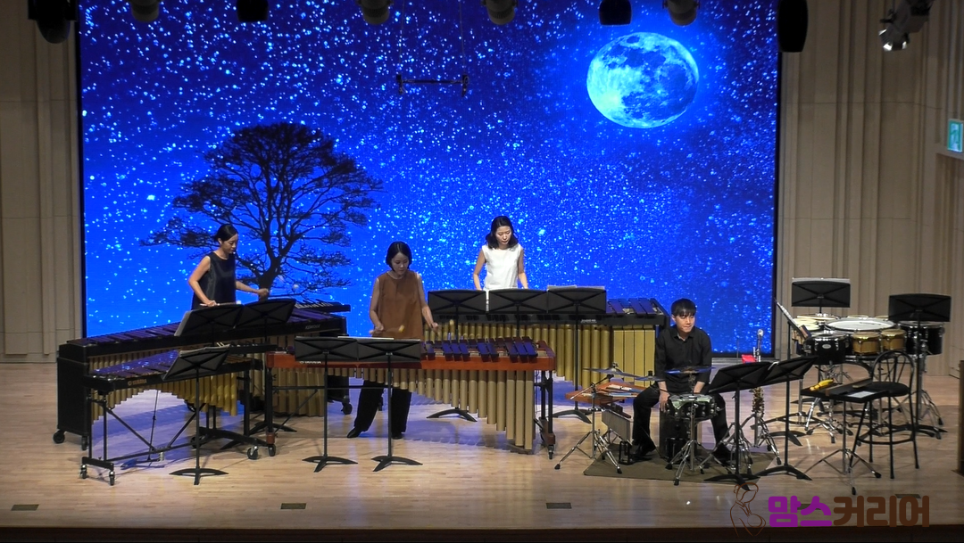이날 푸르지오아트홀 무대에는 마림바, 비브라폰과 같이 음정이 있는 유율 타악기와 베이스드럼, 톰톰, 봉고, 카혼, 심벌 등 스틱이나 손으로 두드려서 다양한 소리를 내는 무율 타악기들이 빼곡히 놓여 있었다. 각기 다른 울림을 가진 타악기들이 무대를 가득 채우고 있는 모습은 연주가 시작되기 전부터 관객들의 기대와 호기심을 자아냈다.