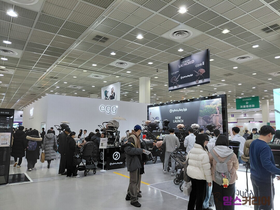 16일 평일 방문임에도 불구하고 많은 관람객이 몰렸으며, 특히 입구 쪽에 배치된 유모차 전시 공간과 아기띠 부스에 인파가 집중됐다. 후원사인 에그는 대형 독립부스를 운영하며 예약 고객 순서대로 입장하는 방식으로 프리미엄 상담을 진행했다.