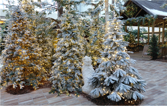 | ▲크리스마스 빌리지 내부 눈 쌓인 나무 |