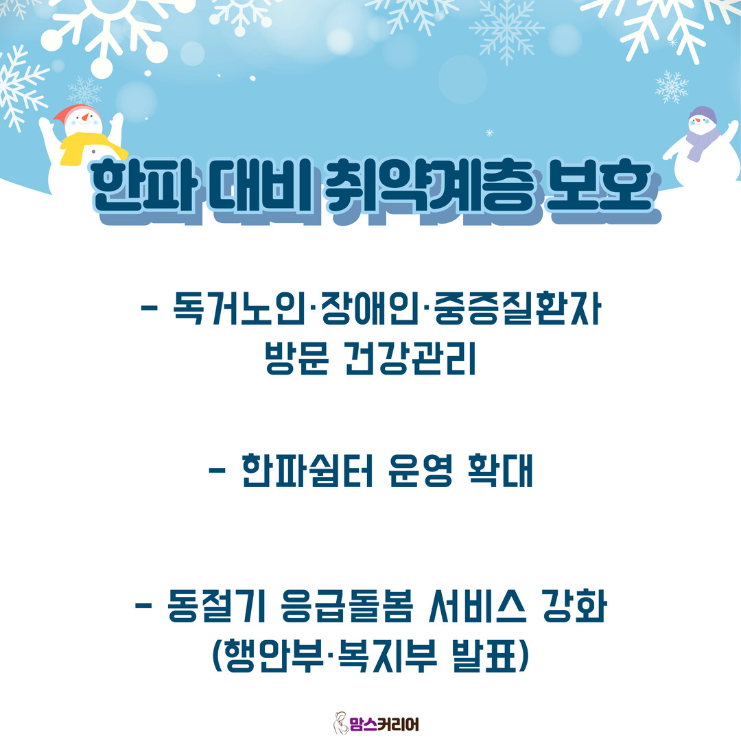 정부·지자체가 발표한 겨울 안전·복지 대책을 총정리해 본다.