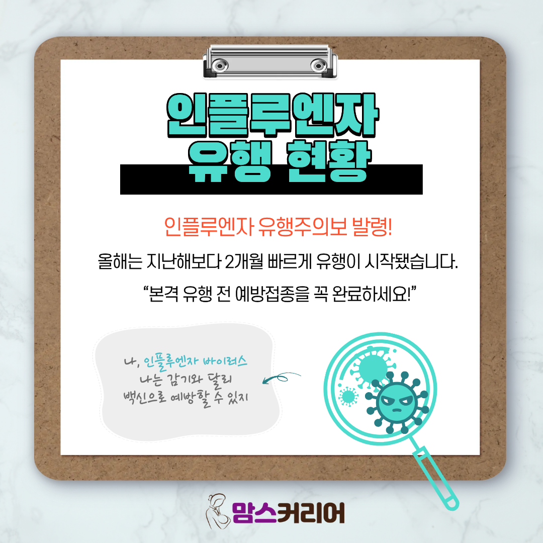 [맘스커리어 = 최영하 기자] 인플루엔자 유행이 지난해보다 약 두 달 빠르게 시작된 가운데, 정부가 예방접종을 서둘러 받을 것을 당부했다.