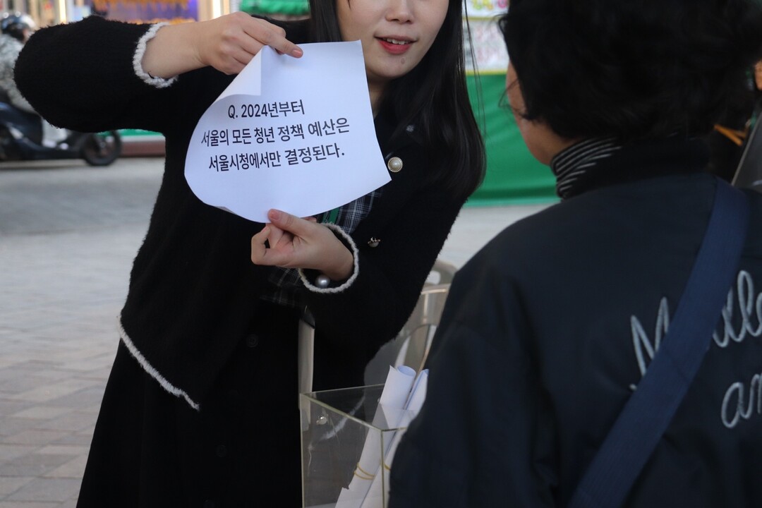 조혜미 = 청년의 범위를 어떻게 보는지에 따라 다르겠지만, 정치에 관심이 없는 청년들이 많잖아요. 내 또래 친구들이 관심 없고, 싫어하고 기피하고 마음의 벽이 있는 경우가 많다는 문제의식에서 어떻게 이 문제를 해소할 수 있을까. 어떻게 해야 청년들이 정치를 ‘아 어려운 게 아니구나’라고 생각하게 만들 수 있을까라는 문제의식에서 출발했어요. 그래서 유동인구가 많은 공간에서 정치가 본질적으로 무엇인지를 알리고, 자신이 바라는 의제나 각자가 꿈꾸는 세상을 만들기 위한 방법에 대해 알려주고 싶었어요. 쉽게 말씀드리면, 정치를 여의도에서만 하는 게 아니라 시민들의 삶에 밀접한 정치가 무엇인지 알려주는 행사입니다.