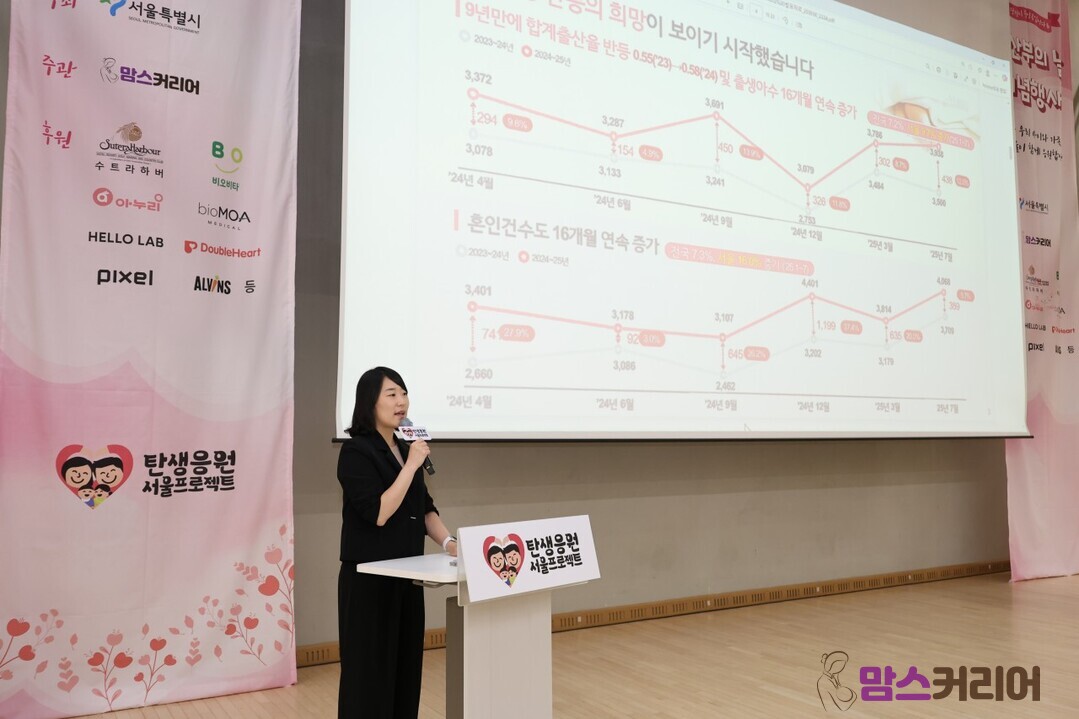 ▲ 최현정 서울시 저출생담당관이 서울시 정책을 소개하고 있다.[사진=맘스커리어] |