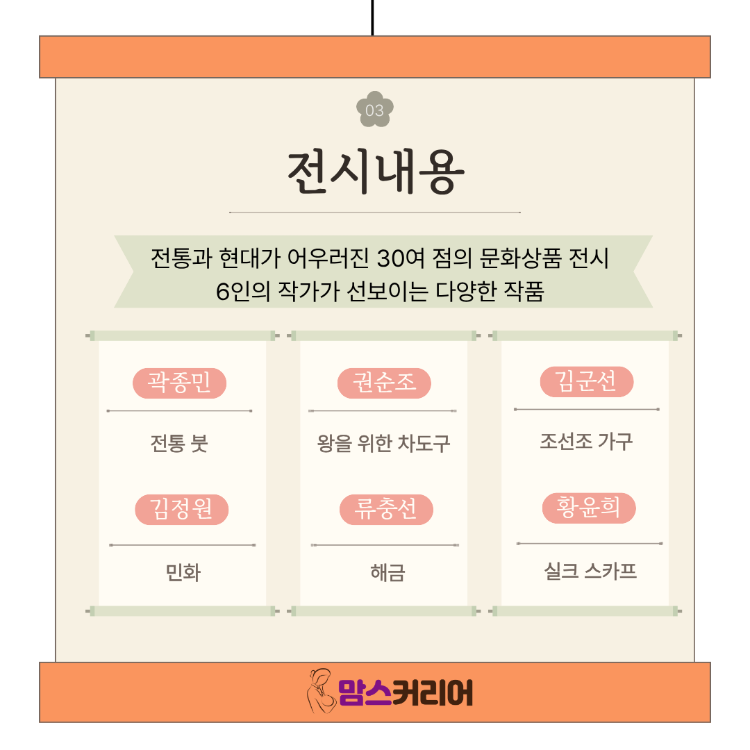 강성민 조달청 구매사업국장은 “이번 특별전이 정부조달 문화상품에 대한 국민의 관심을 높이고, 우리 전통문화를 가까이에서 느낄 수 있는 좋은 계기가 되길 바란다”며 “앞으로도 우수한 전통문화상품의 대중화와 판로 확대를 위해 지속적으로 노력하겠다”고 밝혔다.