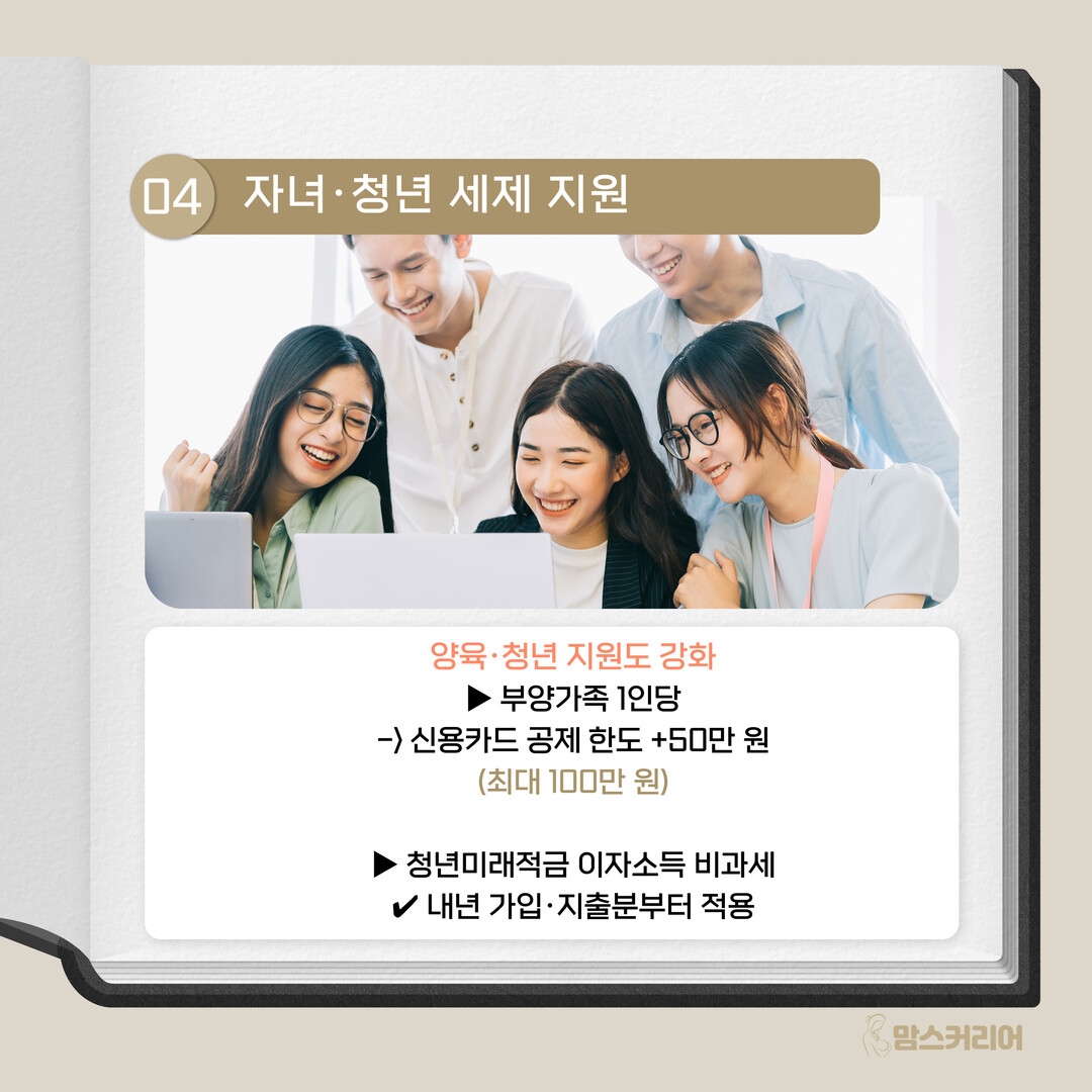 [맘스커리어 = 최영하 기자] 내년부터 출산과 보육비의 비과세 한도를 월 20만 원에서 자녀 1인당 월 20만 원으로 확대하고, 초등학교 2학년 이하 또는 9세 미만 아동의 예체능학원비를 교육비 세액공제 대상에 포함한다.
