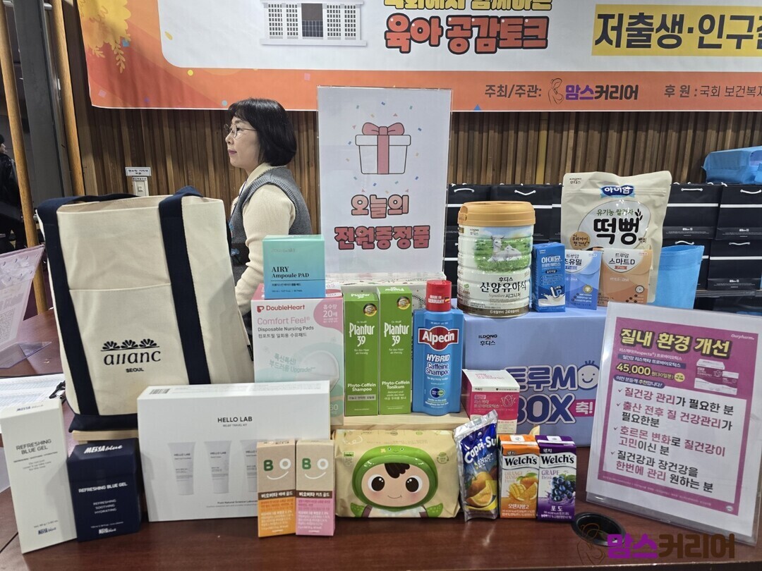 아울러 참가자 전원에게는 △일동후디스 트루맘박스 △알랑 에코백 △헬로랩 4종 여행용 키트 △1000플란투어39 파이토 카페인 토닉 200ml, 파이토 카페인샴푸 가는모발용 250ml △알페신 하이브리드 카페인 샴푸 375ml △에어리 앰플패드 150ml △엘빈즈 냠냠박스 △일동생활건강 비오비타 키즈 샘플 △메사블루 리프레싱 블루젤, 네오시카 크림 △더블하트 수유패드 △유비맘 PP젖병 △아워팜 질건강 리스펙타 △순둥이 물티슈 그린에디션, 휴대용 물티슈 등이 선물로 제공됐다.