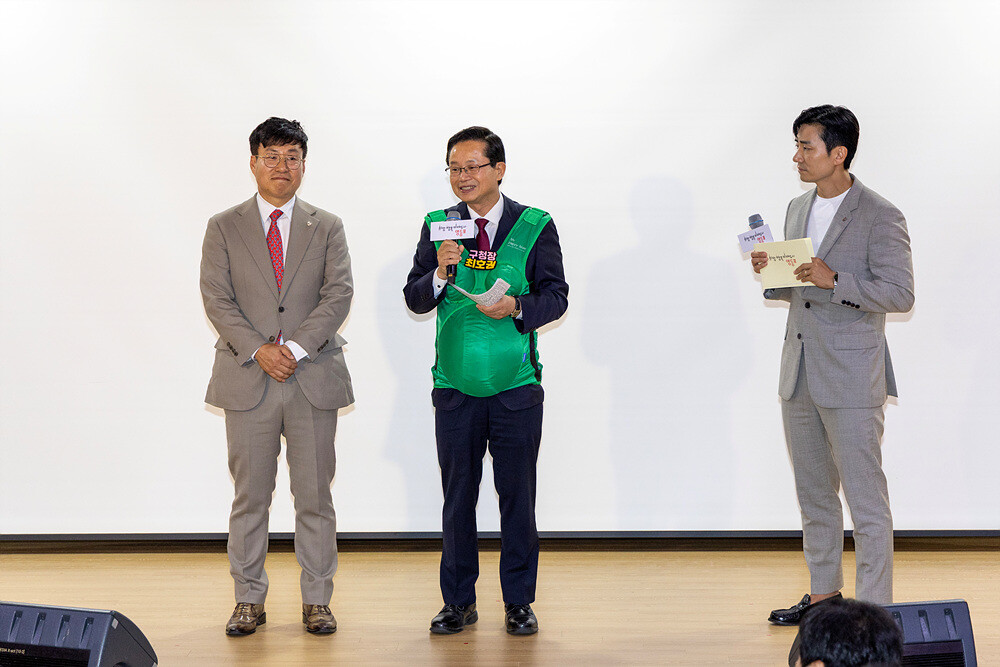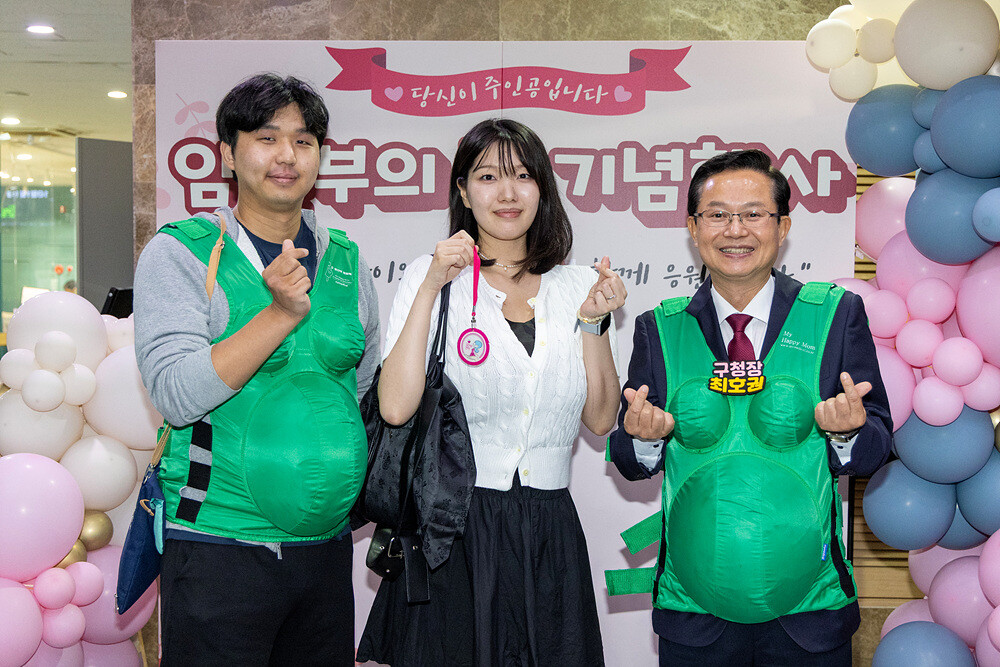 임신부 체험복을 착용하고 무대로 올라온 최호권 구청장은 "지금 출산율이 너무 낮아서 위기인데 우리 구가 굉장히 많은 지원을 하고 있다. 임신을 준비하는 커플을 위한 산전 검사비를 지원하고 있고, 당산동에 서울상상나라를 조성해 2028년 완공할 계획이며 시간제 보육 어린이집을 곳곳에 확충하고 있다"며 "여기 계신 여러분이 영웅이다. 오늘 좋은 강의 들으시고 임신 기간 중 보건소 행사에도 적극적으로 참여해 주시기 바란다"라고 전했다.