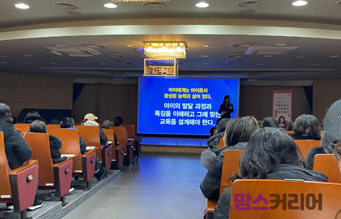 [맘스커리어 = 김혜원 엄마기자] 서울 양천구 목마교육도서관은 지난 5일 오전 10시 양천문화회관 해바라기홀에서 김수미 논술화랑 대표를 초청해 독서력을 주제로 한 강연을 개최했다. 김 대표는 <1등급을 이기는 생기부 독서법> <성적 초격차를 만드는 독서력 수업>의 저자이기도 하다. 이날은 전날 밤 내린 폭설로 도로 곳곳이 얼어붙어 교통이 매우 불편하고 강풍까지 부는 날씨였다. 김 대표가 “이렇게 궂은 날 강연장을 찾아 줘 감사하다”라고 말할 정도였다. 그런데도 자녀 교육에 관심 있는 양육자 100여 명이 강연장을 찾았다. 참석자들은 강연 내내 메모를 하고 중간중간 사진 촬영을 하는 등 강연에 집중했다.