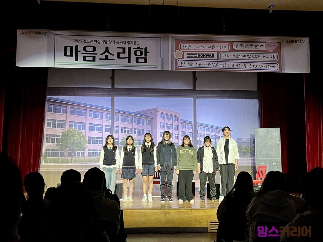 [맘스커리어 = 김보미 엄마기자] 지난 16일 오후 4시, 시립보라매청소년센터 다이나믹홀에서는 청소년 창작 뮤지컬 동아리 도화지의 열세 번째 정기 공연 '마음소리함'이 펼쳐졌다. 청소년들이 직접 대본을 쓰고 연습해 무대에 올린 이번 공연은 청소년 자살 예방과 생명 존중의 메시지를 담고 있는 창작 뮤지컬이다.