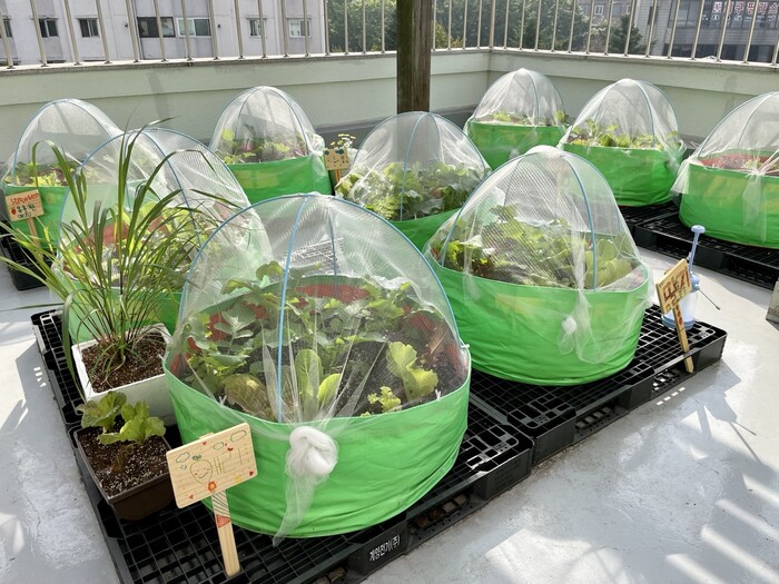 | ▲옥상에 위치한 텃밭에서는 청소년들을 위한 가을농사 프로그램이 진행되고 있다.[사진=김보미 기자] |