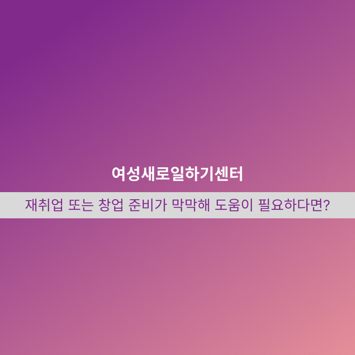 재취업 또는 창업 준비가 막막해 도움이 필요하다면 여성새로일하기센터를 방문해보는건 어떨까?