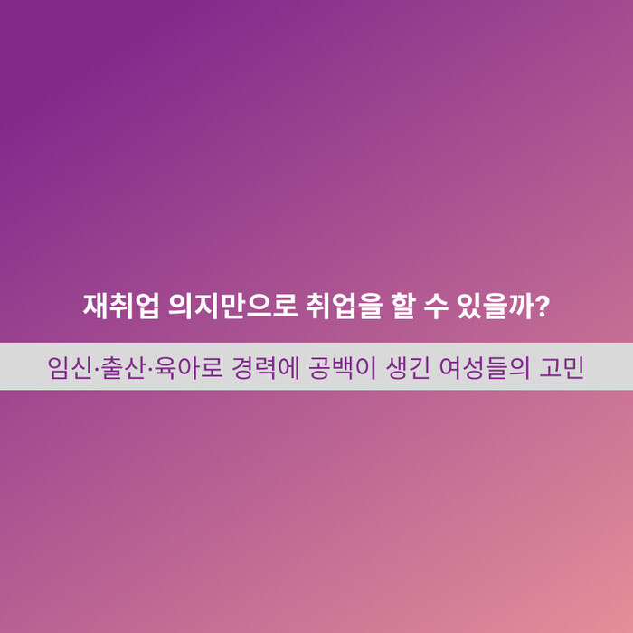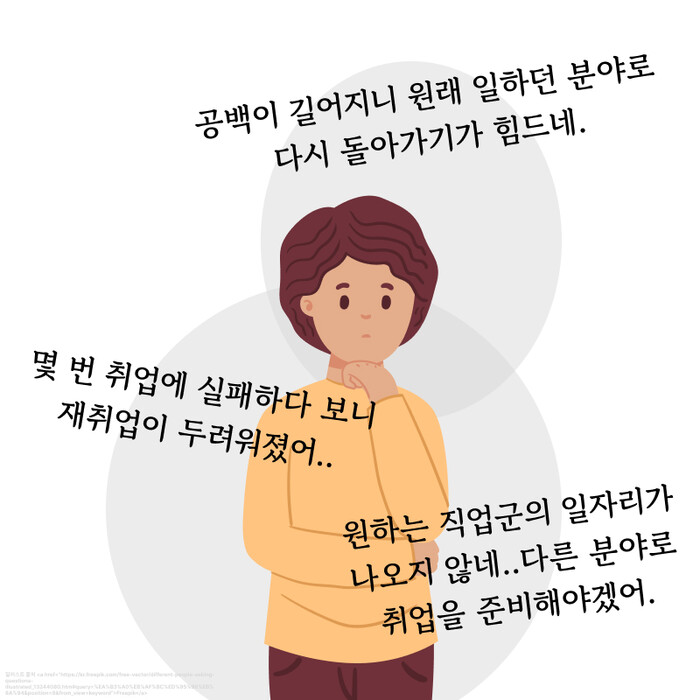 [맘스커리어=이다영 청년기자, 최영하 기자] 임신·출산·육아로 경력에 공백이 생긴 여성들, 재취업을 원하지만 재취업 의지만으로 취업을 할 수 있는 것은 아니다. 공백이 길어지면 원래 일하던 분야로 다시 돌아가기가 힘들고 몇 번 취업에 실패하다 보면 재취업에 대한 두려움이 생기기도 한다. 원하는 직업군의 일자리가 나오지 않아 전혀 다른 분야로의 취업을 준비하는 사람들도 많다.