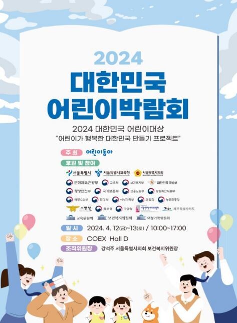 [맘스커리어 = 최영하 기자] 대한민국 어린이박람회 조직위원회가 주관하고, 서울특별시·서울특별시교육청·서울특별시의회를 비롯해 정부부처 등 23개 기관이 후원·참여하는 ‘2024 대한민국 어린이박람회’가 12~13일 양일간 코엑스(Hall D)에서 개최된다.