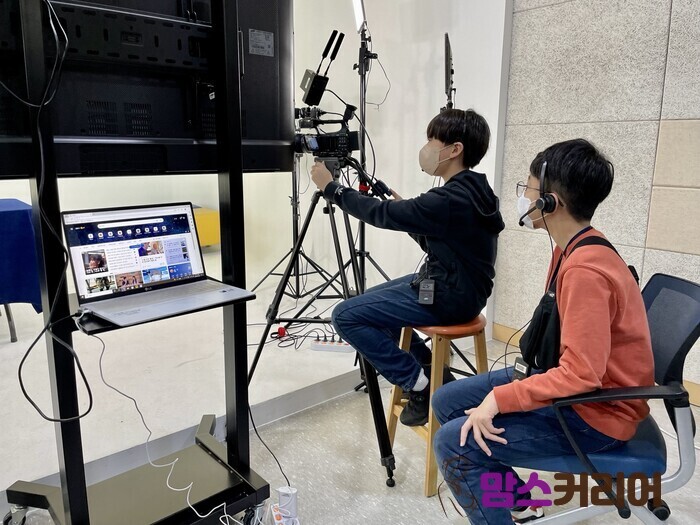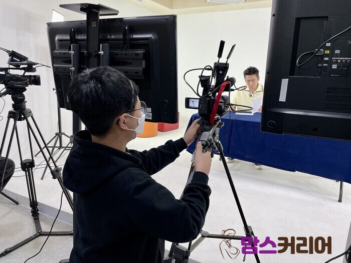 | ▲한 학생이 촬영 전 카메라를 세팅하고 있다.[사진=맘스커리어] |