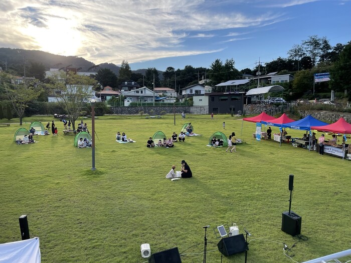지난 27일 대청호반자연생태공원에서는 마을축제인 '대청호에 살으리랏다'가 오후 4시부터 8시까지 진행됐다. 이날 행사는 2022 문화가 있는 날 지역 문화콘텐츠 특성화 사업의 일환으로 문화체육관광부가 주최하고 지역문화진흥원과 사회적협동조합 창작집단 쟁이가 주관한 지역문화예술축제다.