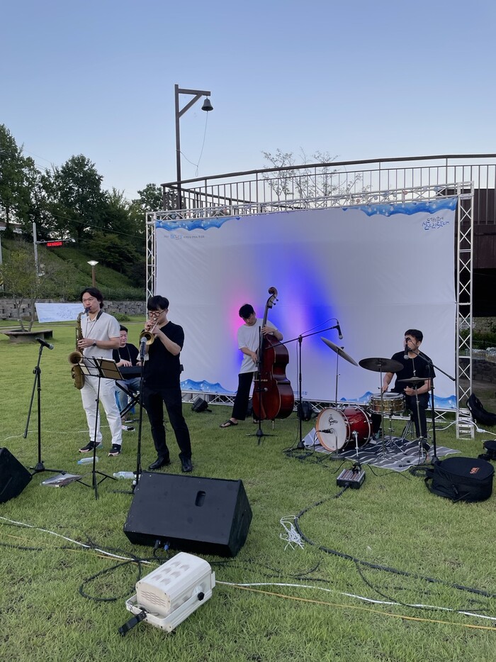 | ▲유성재즈악단이 재즈 공연을 펼치고 있다.[사진=김보미 기자] |