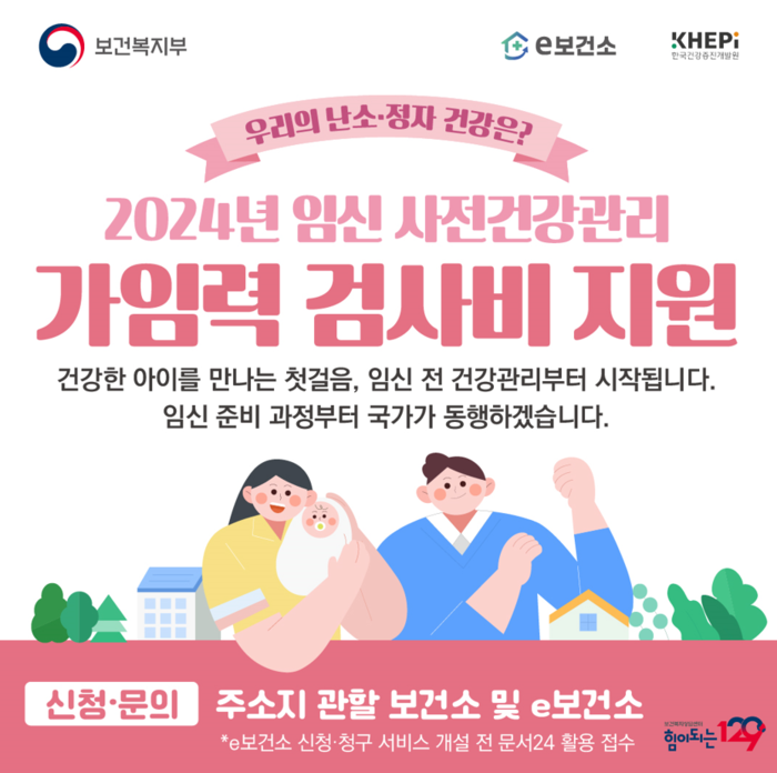보건복지부의 필수 가임력 검사비 지원은 지난 1일부터 시행됐다. 임신을 준비하는 부부라면 소득 수준, 거주 지역에 관계없이 누구나 여성 13만 원, 남성 5만 원의 검진비를 지원받을 수 있다. 결혼을 앞두고 있는 예비부부와 사실혼 관계인 남녀도 지원 대상에 포함됐다. 다만 자체적으로 '서울시 남녀 임신준비 지원사업'을 시행 중인 서울시는 사업에서 제외됐다.