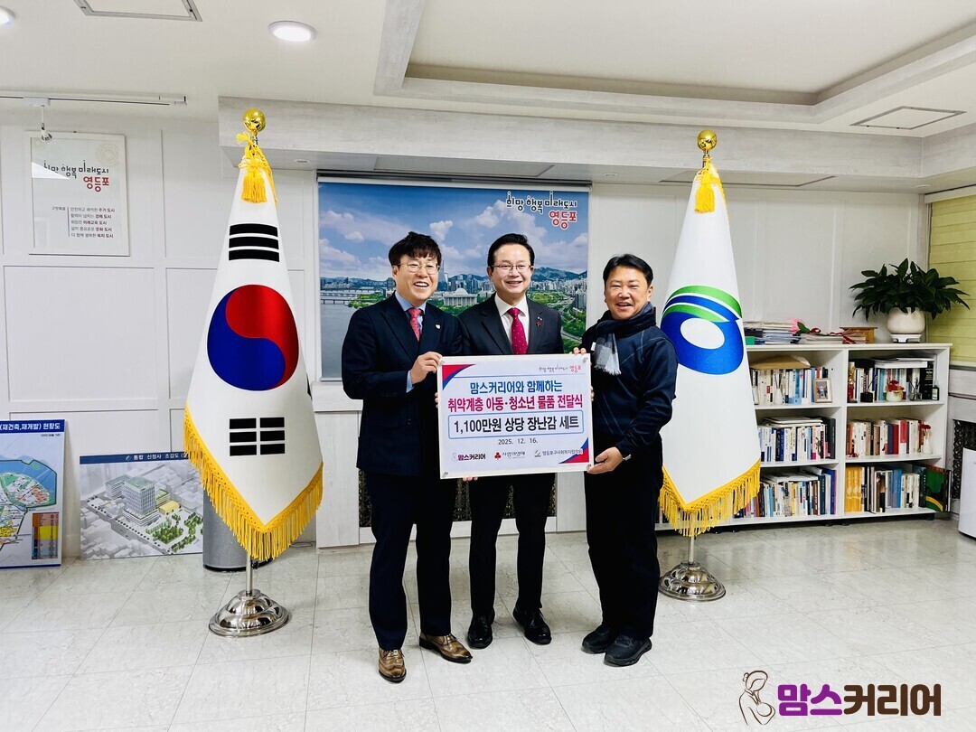이금재 맘스커리어 대표는 16일 오전 9시 영등포구청을 직접 방문해 1100만 원 상당의 한국교육시스템 어린이 장난감 세트 20박스를 기부했다. 전달식에는 이금재 대표와 최호권 영등포구청장, 김용술 일자리경제과장, 조영철 영등포구협의회 사무국장 등이 참석했다. 물품은 지역 내 도움이 필요한 가정의 아이들에게 따뜻한 연말 선물로 전달될 예정이다. 전달식 이후 가진 차담회에서는 저출생 극복을 위한 임산부, 육아맘 지원 방안에 대해 다양한 의견이 오갔다.