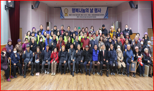 | ▲지난 12월 4일 고양동종합복지회관 2층에서 '제1회 고양동 행복 나눔의 날'행사를 개최하고, 관계자들이 기념촬영을 하고 있다.[사진=서울시 장사시설 관련 주민협의회] |