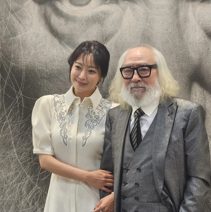 | ▲박람회장을 찾은 김희선 배우와 강형구 화백[사진=대한민국 미술박람회] |