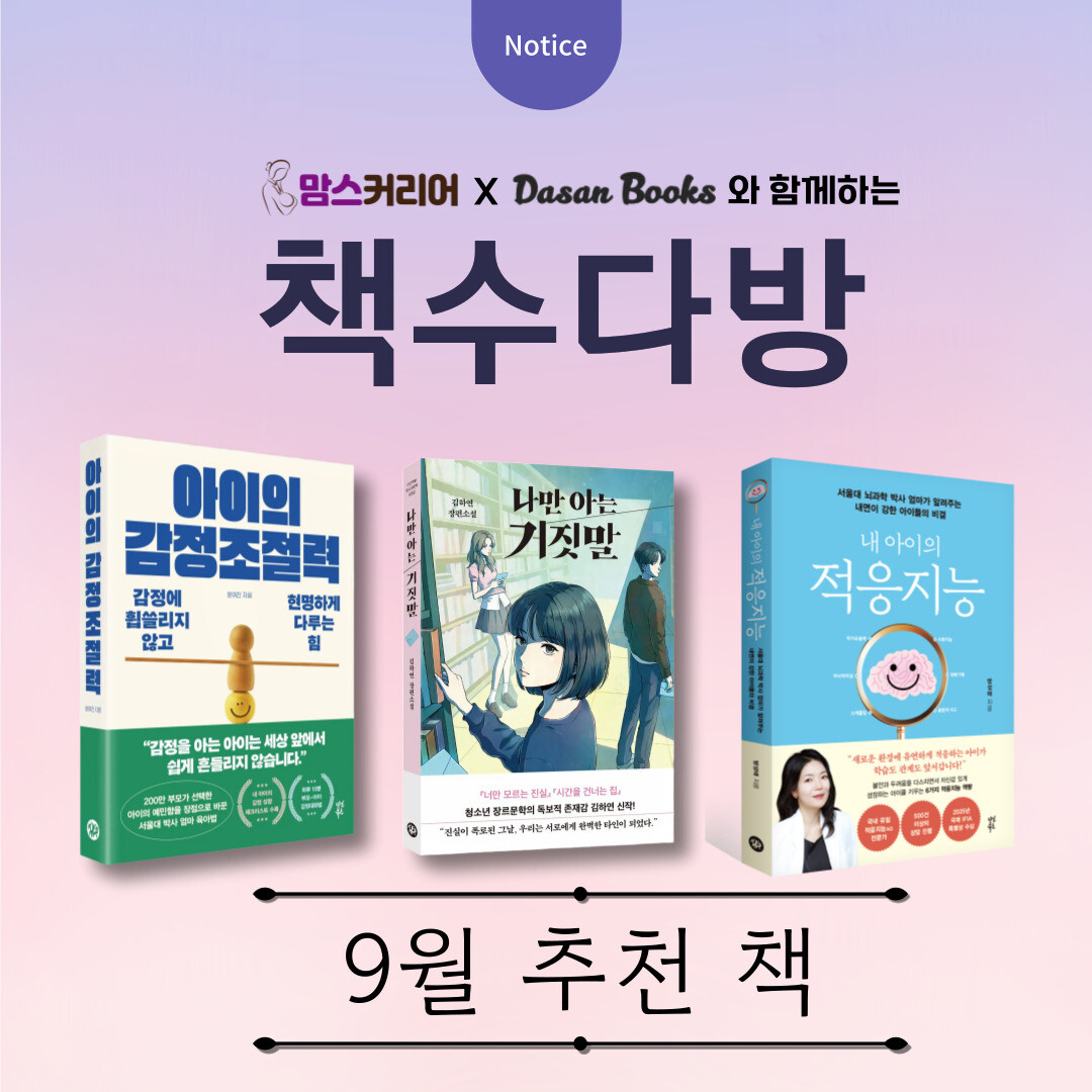 [맘스커리어 = 최영하 기자] 맘스커리어와 다산북스가 진행하는 영유아 엄마들을 위한 특별한 독서 모임 '책수다방'의 9월 도서가 선정됐다.