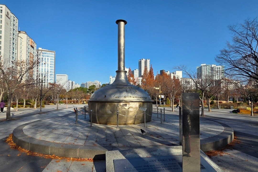 | ▲담금솥, 맥주 공장이 이전하면서 맥주 제조에 사용되던 순동으로 만든 담금솥을 남겨 두어 공원의 랜드마크 기념물이 되었다.[사진=김복희 엄마기자] |