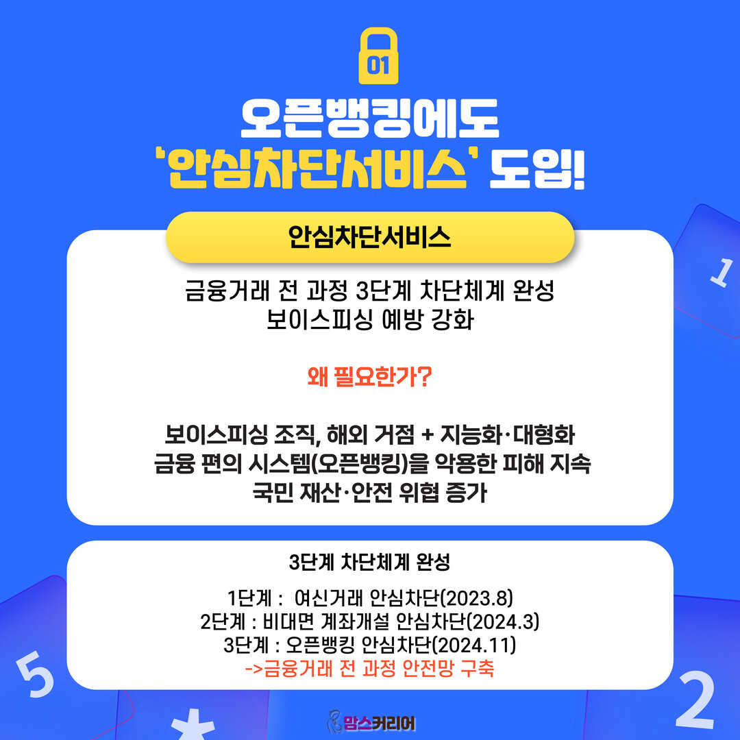 맘스커리어 - [카드뉴스] 오픈뱅킹에도 안심차단서비스 도입…보이스피싱 막는다