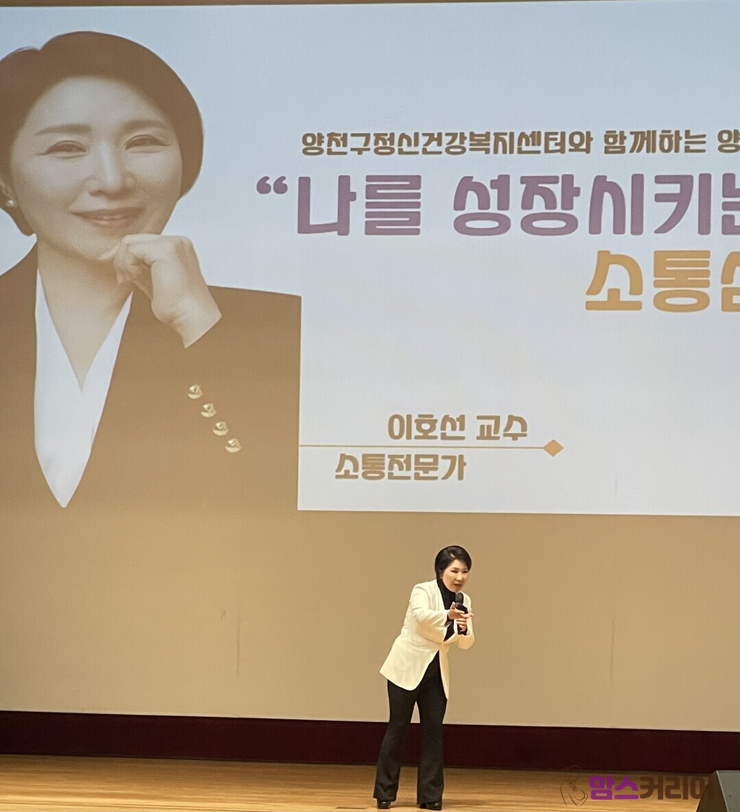 [맘스커리어 = 김혜원 엄마기자] 서울 양천구는 27일 오전 10시 30분, 해누리타운 2층 해누리홀에서 이호선 숭실사이버대학교 기독교상담심리학과 교수를 초청해 ‘나를 성장시키는 소통 심리학’을 주제로 강연을 열었다.