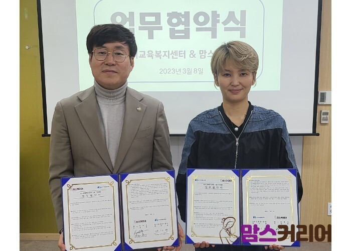 양사는 이번 업무협약을 통해 강서교육복지센터 교육 소외 학생과 그 가족의 성장지원을 위한 통합적인 교육복지 관련 서비스를 제공하고, 교육 소외 계층의 환경 및 복지 개선을 위한 대외활동에 협력하기로 했다. 또 맘스커리어와 강서교육복지센터의 발전 및 주요 관심 사항에 대한 인적·물적 자원에 대해 상호 협력하기로 했다.