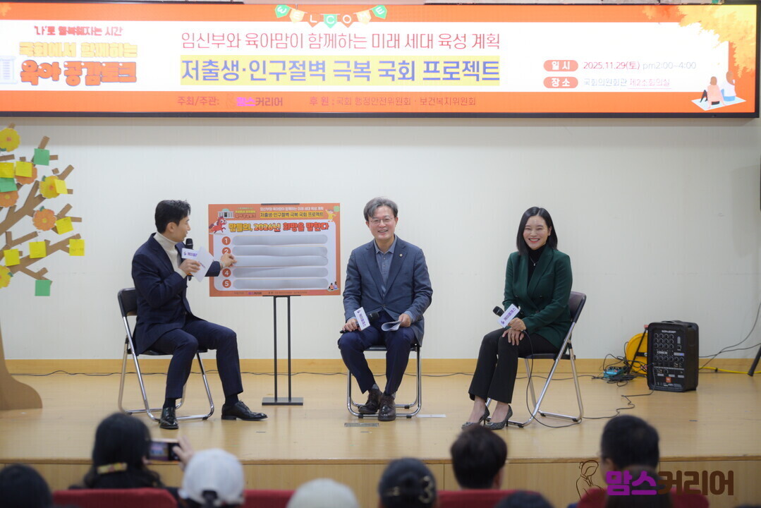 뒤이어 열린 토크 콘서트 '2026년, 맘들의 희망을 말한다'에서는 사회자 이정수와 채현일 의원, 안정은 대표가 함께했다. 이 자리에서는 임산부 프리 패스, 아빠도 이용할 수 있는 육아 공간, 아동·청소년들이 마음껏 뛰놀 수 있는 공간, 교육에 대한 부담, 경력 단절 여성들의 재취업 등 다양한 주제로 이야기가 오갔다.