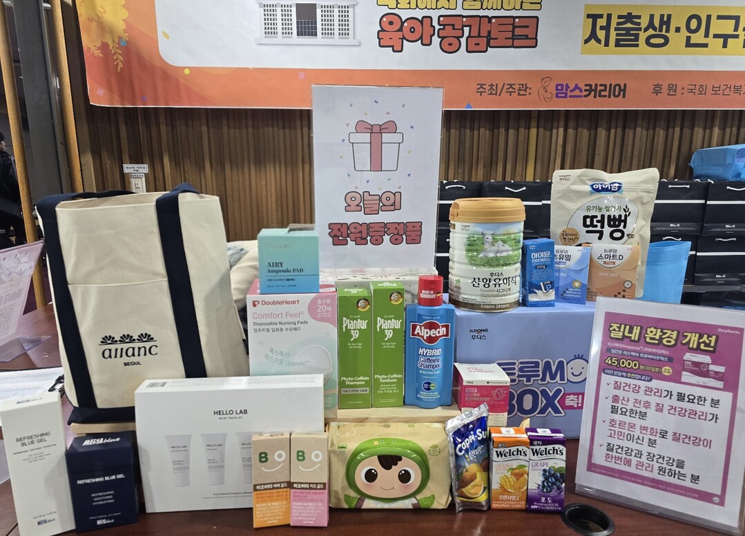 아울러 참가자 전원에게는 △일동후디스 트루맘박스 △알랑 에코백 △헬로랩 4종 여행용 키트 △1000플란투어39 파이토 카페인 토닉 200ml, 파이토 카페인샴푸 가는모발용 250ml △알페신 하이브리드 카페인 샴푸 375ml △에어리 앰플패드 150ml △엘빈즈 냠냠박스 △일동생활건강 비오비타 키즈 샘플 △메사블루 리프레싱 블루젤, 네오시카 크림 △더블하트 수유패드 △유비맘 PP젖병 △아워팜 질건강 리스펙타 △순둥이 물티슈 그린에디션, 휴대용 물티슈 등이 선물로 제공됐다.