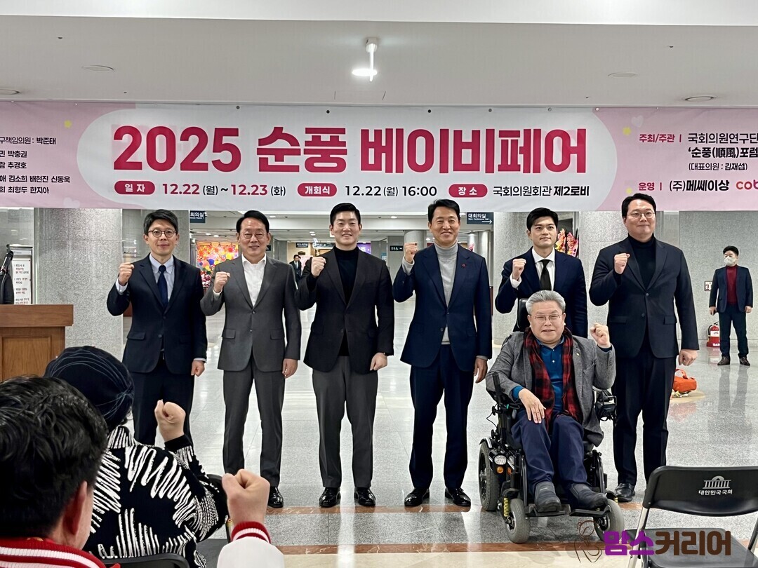 [맘스커리어 = 김보미 엄마기자] 국회의원 연구단체 '2040 순풍 포럼'과 코베 베이비페어가 함께 마련한 '2025 순풍 베이비페어'가 22~23일 국회의원회관 2층 로비에서 진행된다. 이번 행사는 저출생 문제 해결을 위한 사회적 공감대를 확산하고 대한민국 영유아 산업의 경쟁력과 가능성을 조명하기 위해 마련됐다.