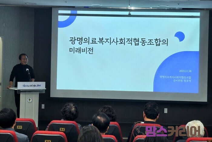 | ▲황호명 준비위원의 광명 의료복지사회적 협동조합의 미래비전 발표 [사진=윤혜숙 기자] |
